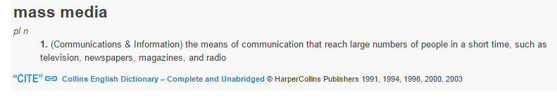Mass audience is linked to mass Media – the Collins dictionary has this to say about it: